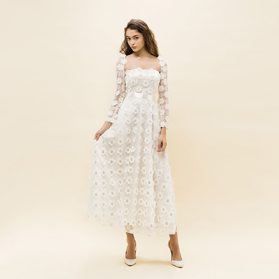 입체 플라워 모티브가 돋보이는 로멘틱한 A라인의 튜브탑원피스입니다.