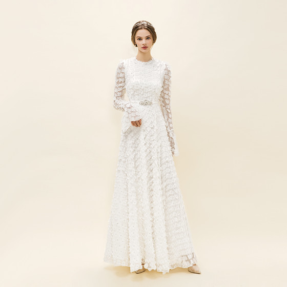 입체감있는 꽃 모티브의 맥시드레스로 화려하면서도 절제된 디자인으로 청순해보이는 스타일의 드레스입니다.