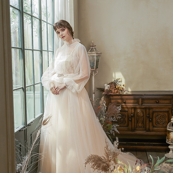 따로 매치할 수 있는 볼륨감있는 하이넥 라인의 시스루한 상체는