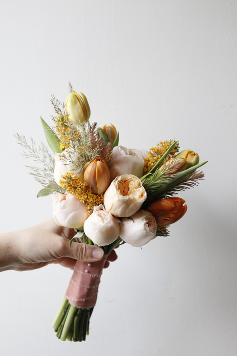D76 화이트튤립+연보라 포인트 부케