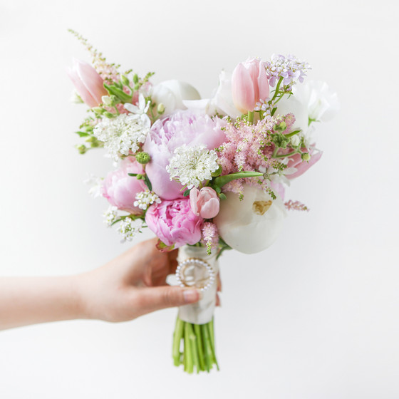 연핑크 작약과 연핑크 튤립의 아름다운 하모니